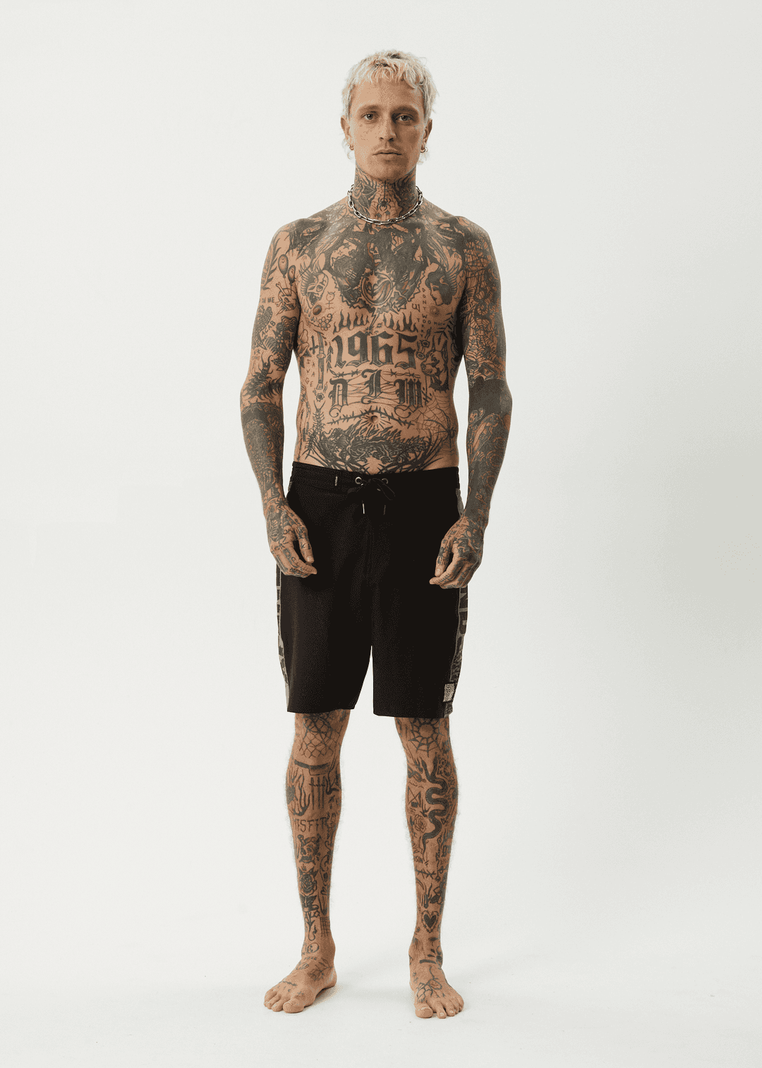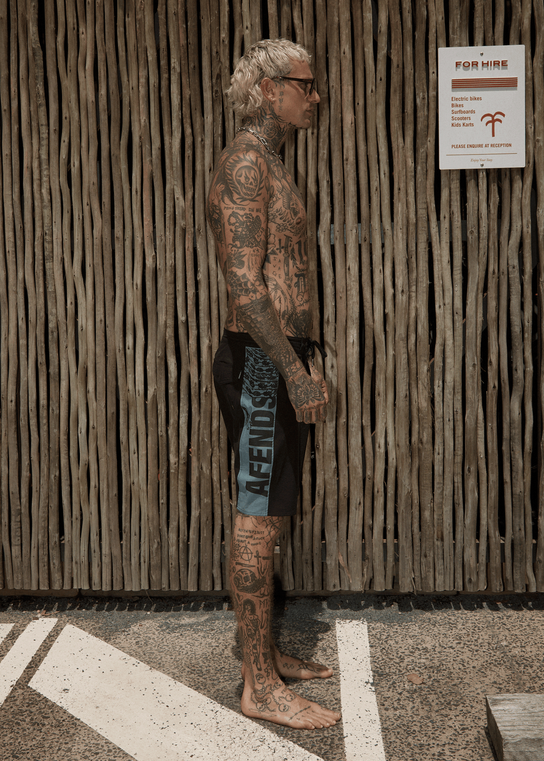 'Tread' in our best-selling Surf Related boardshort cut, offering printed side panel artwork by GB, a fixed waist with drawcord closure, a back cargo pocket, and crafted from water-resistant, recycled 4-way stretch fabric.