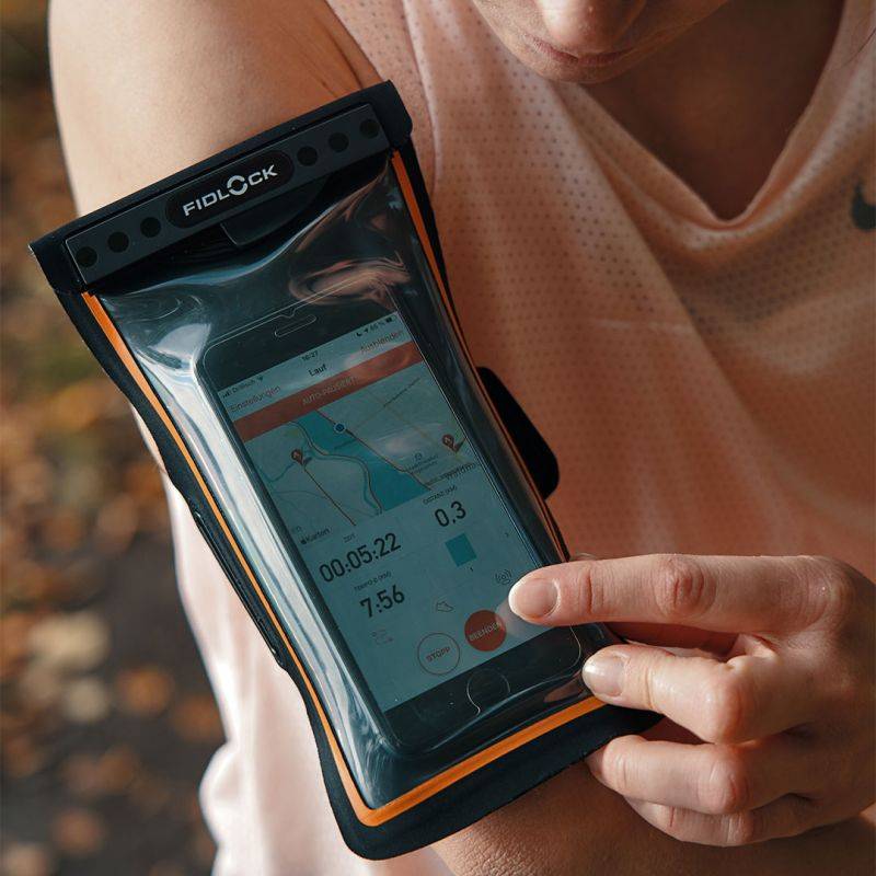 If you are surprised by a downpour while running, the bag on the upper arm is already prepared. Whether it's a drizzle or a downpour, the hermetic sealing technology ensures your smartphone is 100% protected from water and even the finest dust.