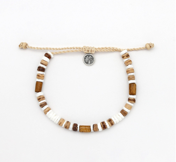 - Made with coloured coconut wood beads on a wax polyester cord.