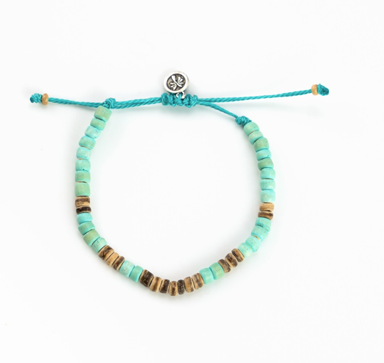 - Made with coconut wood, polymer clay disc beads and wax polyester cord.
