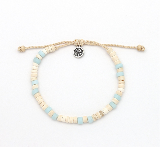 - Made with plaited wax polyester, coloured matte glass beads, frosted glass beads and coconut wood beads on a wax polyester cord.