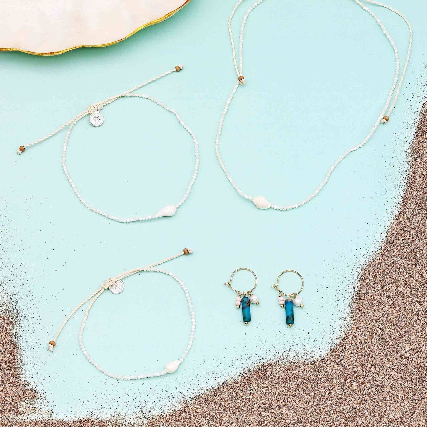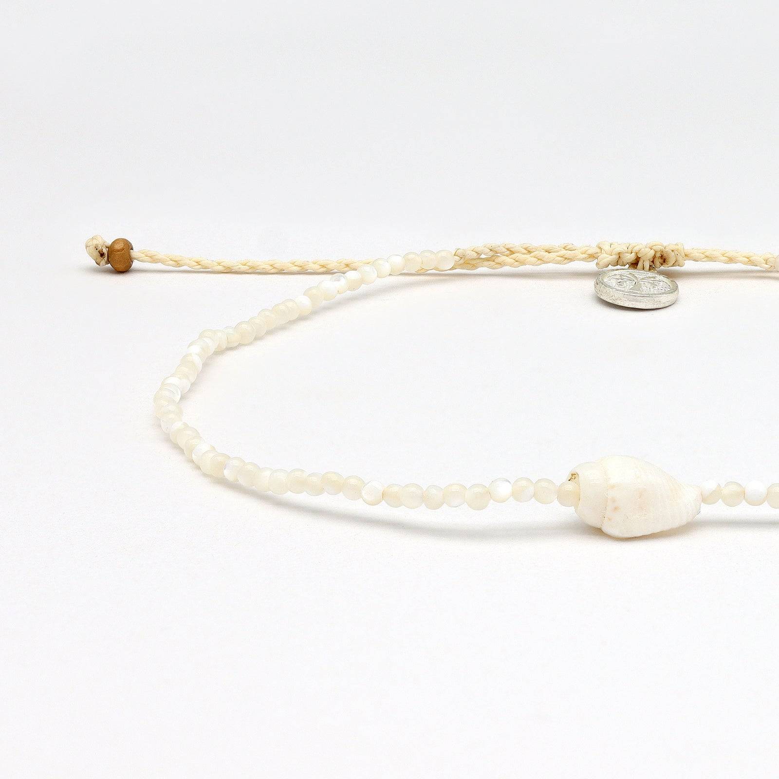 - Made with round shimmering troca shell beads, dainty seashell and our durable wax polyester cord.