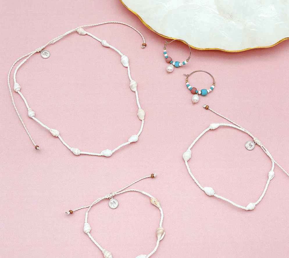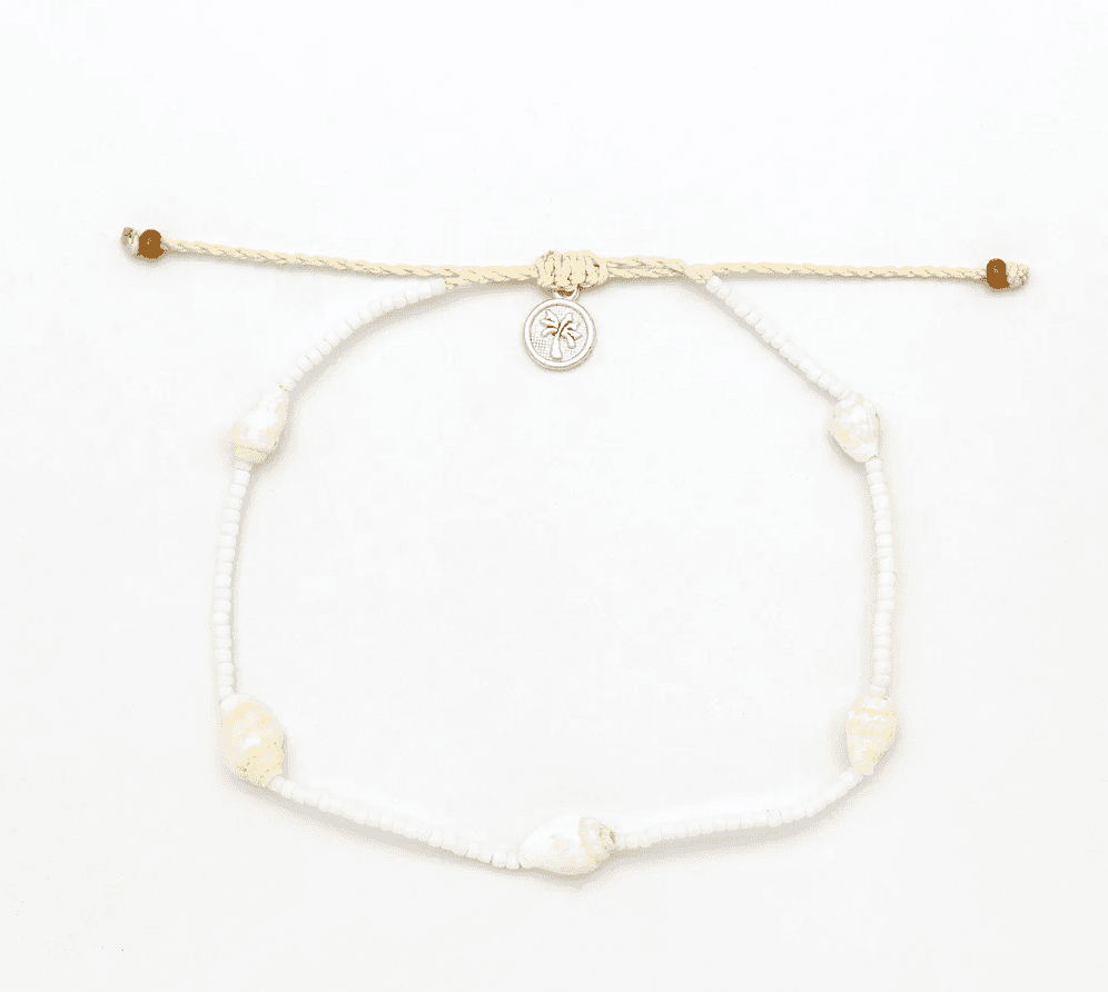 - Made with natural dainty seashells, white seed beads and our durable wax polyester cord.