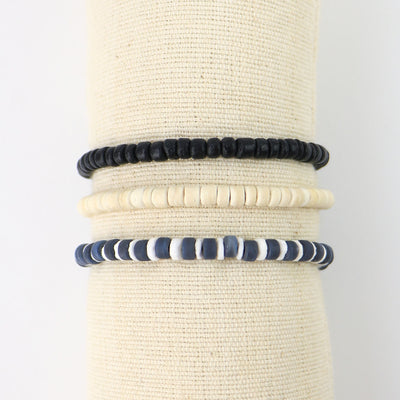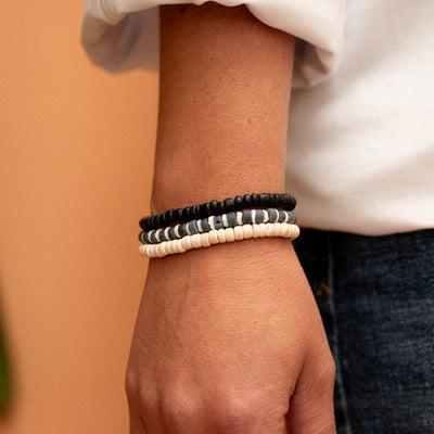 Embrace cosy, coastal vibes this season with the Ala Moana Bracelet Set, perfect for those who dream of the ocean even as the days get chillier! Crafted to capture the serene beauty of the beach, this set of three beaded bracelets brings a subtle touch of the sea to your winter style. With natural coconut wood beads, white puka shell accents, and painted coconut wood, these bracelets are designed to be stacked or worn individually to match your seasonal look.