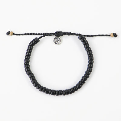 - Made with natural coconut wood beads, white puka shell beads, painted coconut wood, all strung on our durable wax polyester cord.