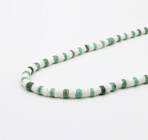 - Made with coconut wood beads and shell disc beads on a wax polyester cord.