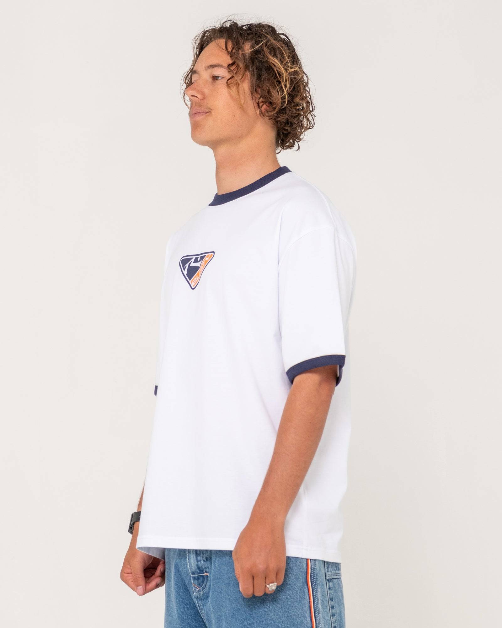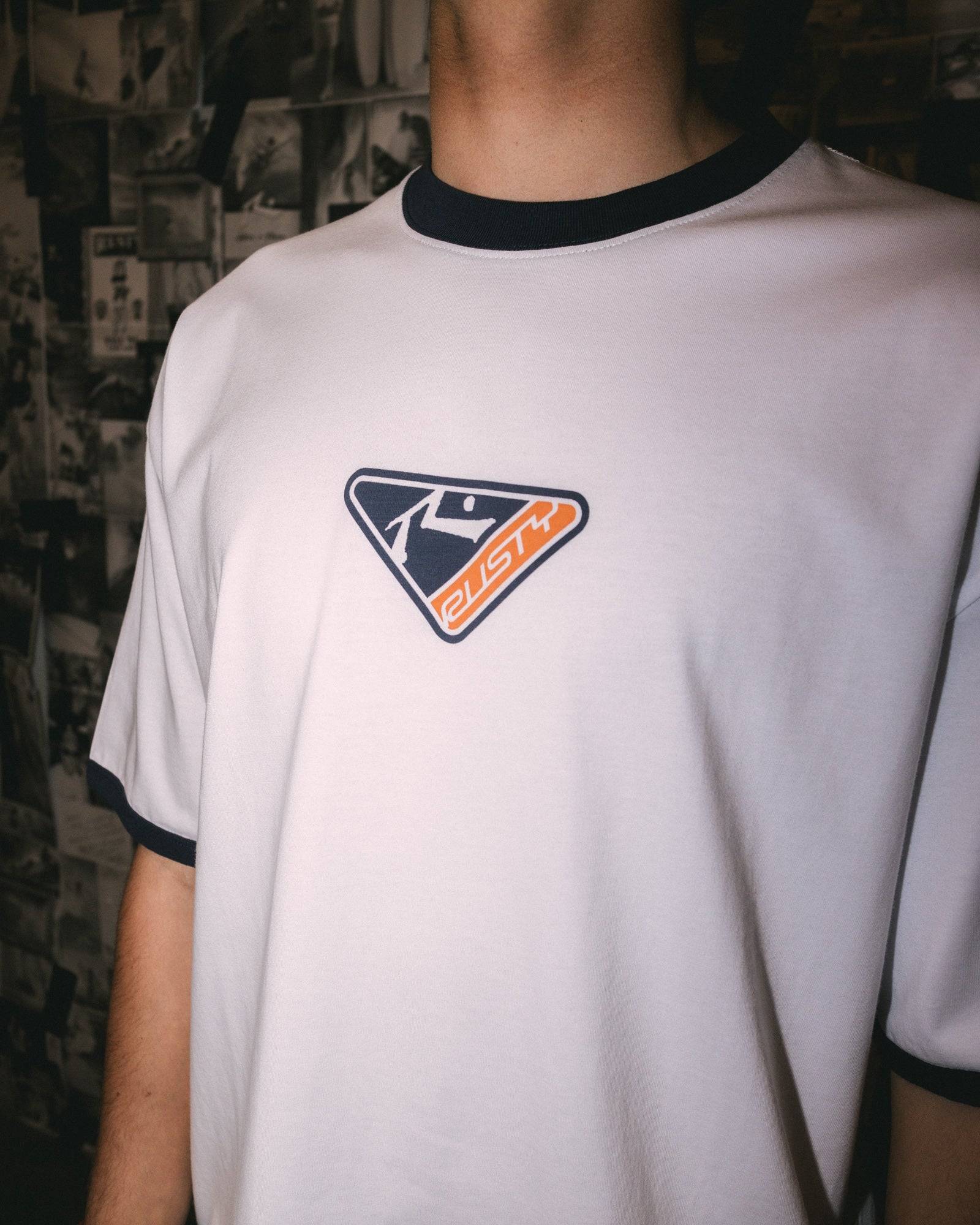Oversized R2K fit tee with panel and piping details and Rusty R2K print. Made from 100% cotton jersey.