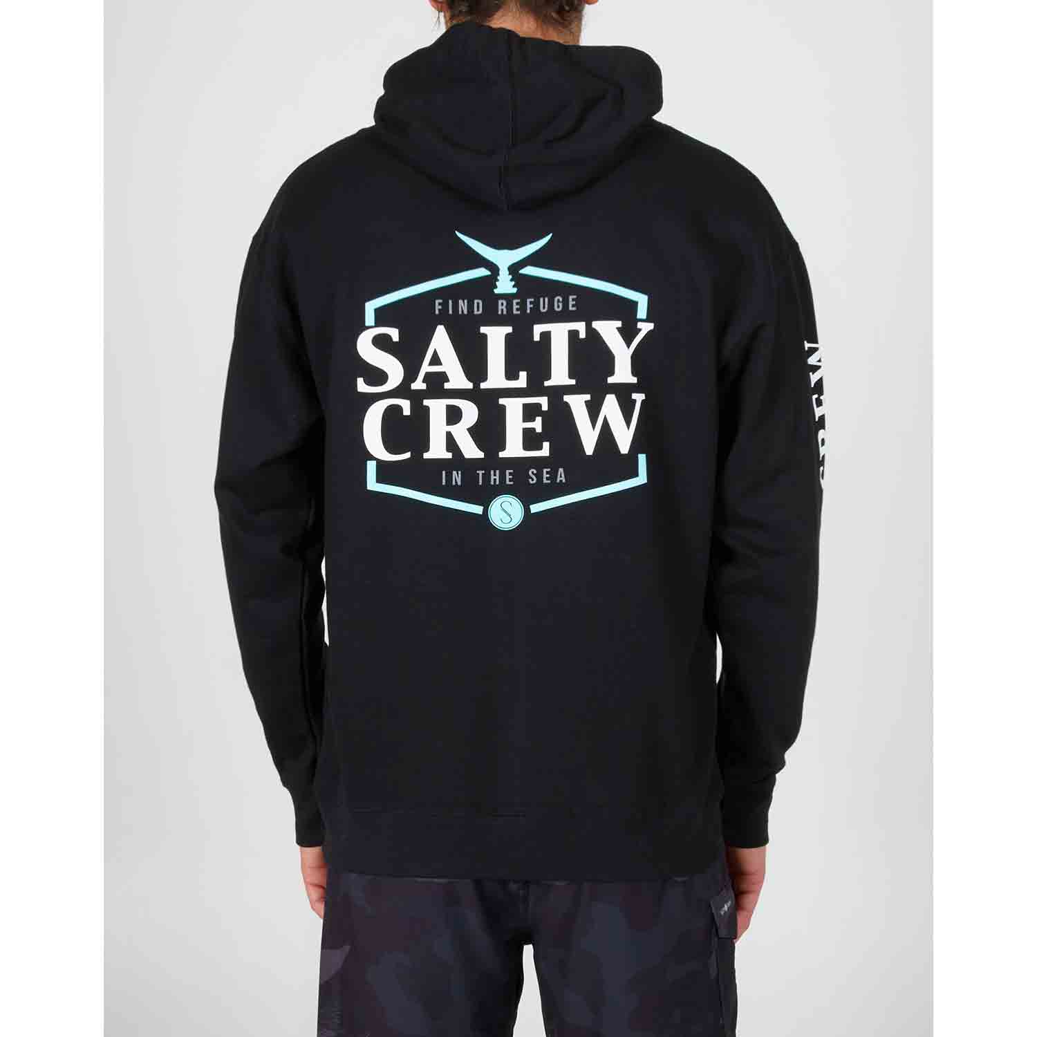 The Skipjack Fleece in colour BLACK. It has Screen printed front, back and sleeves