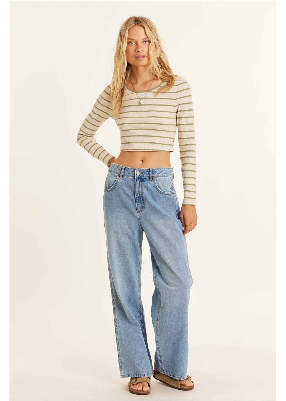 A striped, long-sleeved top with a ribbed knit and a playful cropped cut.
