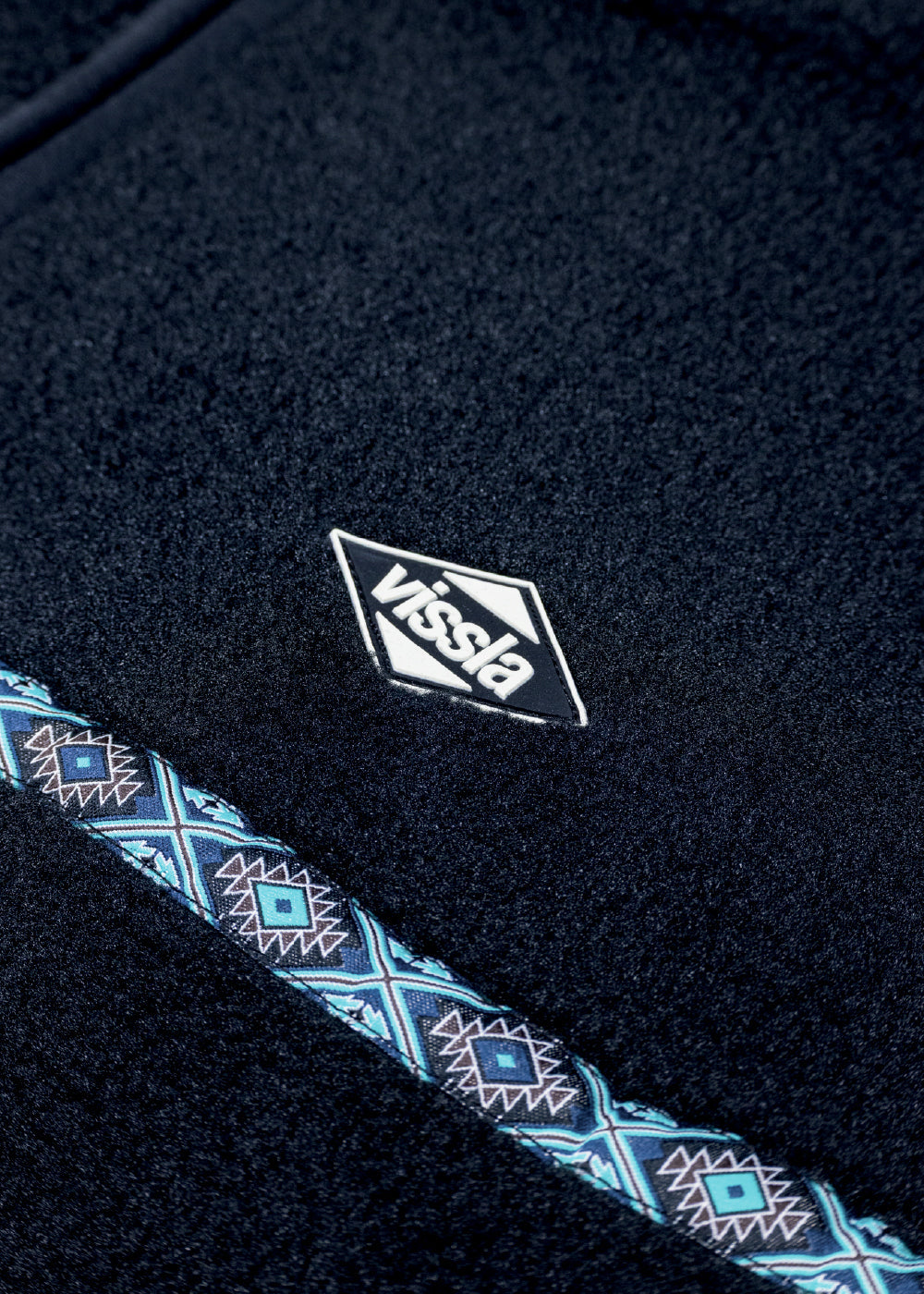 Heavy weight bonded recyled polyster Sherpa and polar Fleece fabric. Front full zip opening.Lycra Binding at writs hem and collar. 2 hands pockets. A Vissla woven patch as an identificaton on the front chest.